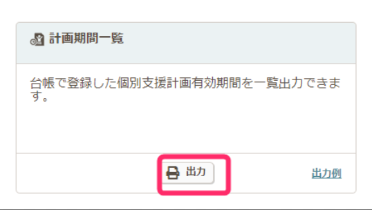 - 計画期間一覧の【出力】のボタンをクリックします。