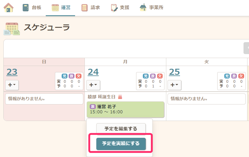保育所等訪問支援のキャンセルの際にも、同様に追加できます。