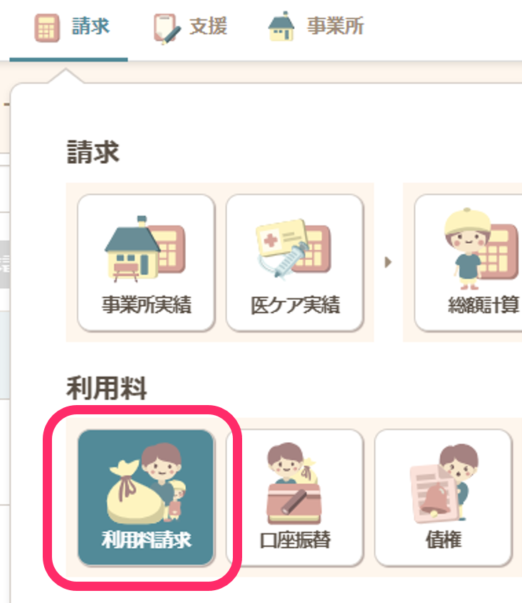 - グローバルナビの【請求】から【利用料請求】をクリックします。
