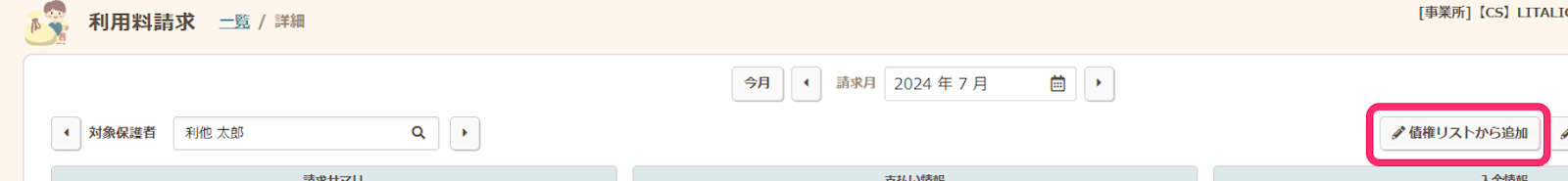 - 再請求を行いたい請求月で、【債権リストから追加する】ボタンをクリックします。