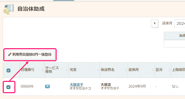 - 自治体助成で負担額が0円になるように一括登録します。