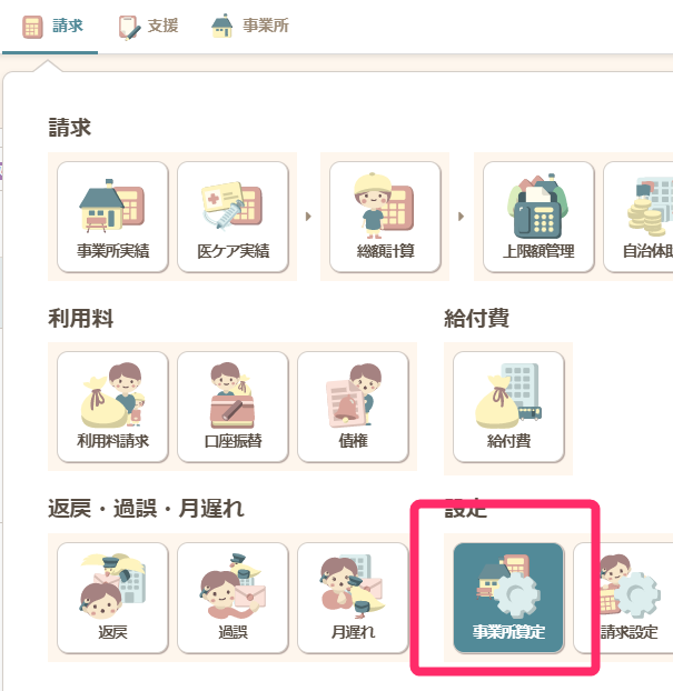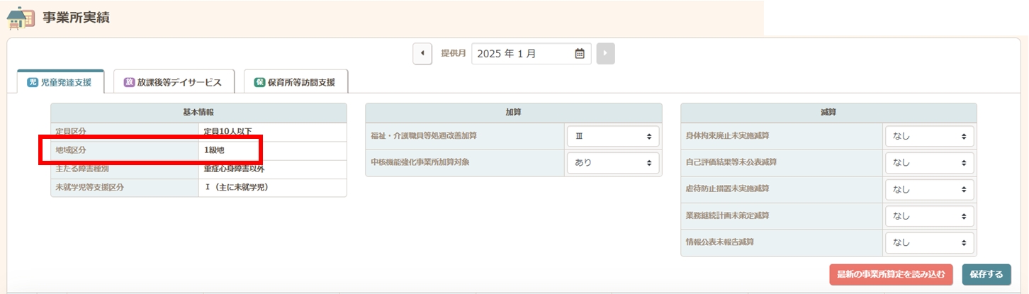 請求>事業所算定にて登録されている「級地」に誤りがないかご確認ください。
