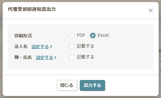 すでに様式確定済みのデータには、修正内容は反映されません。 代理受領額通知書を修正後の正しい名前で出力したい場合は、Excel形式で出力の上修正を行ってください。