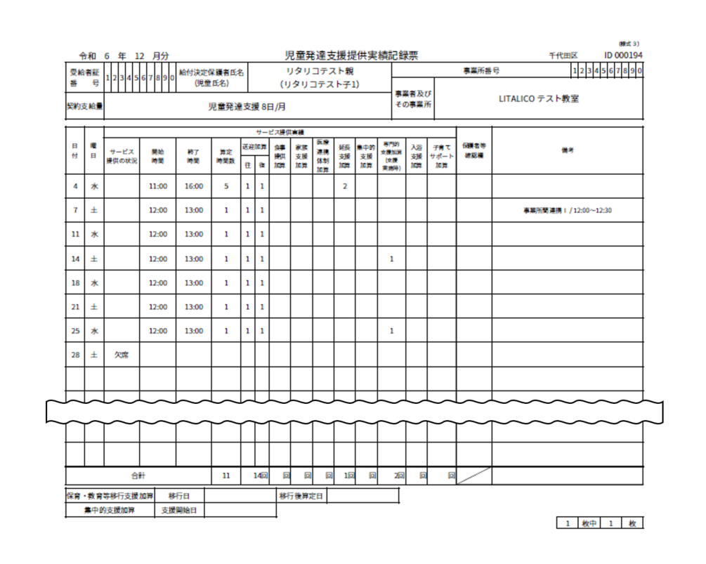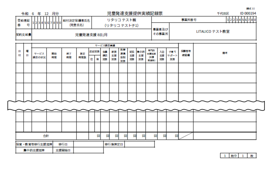 【障害児通所給付費・入所給付費等明細書】見本出力方法に関してはこちらの記事をご参照ください。