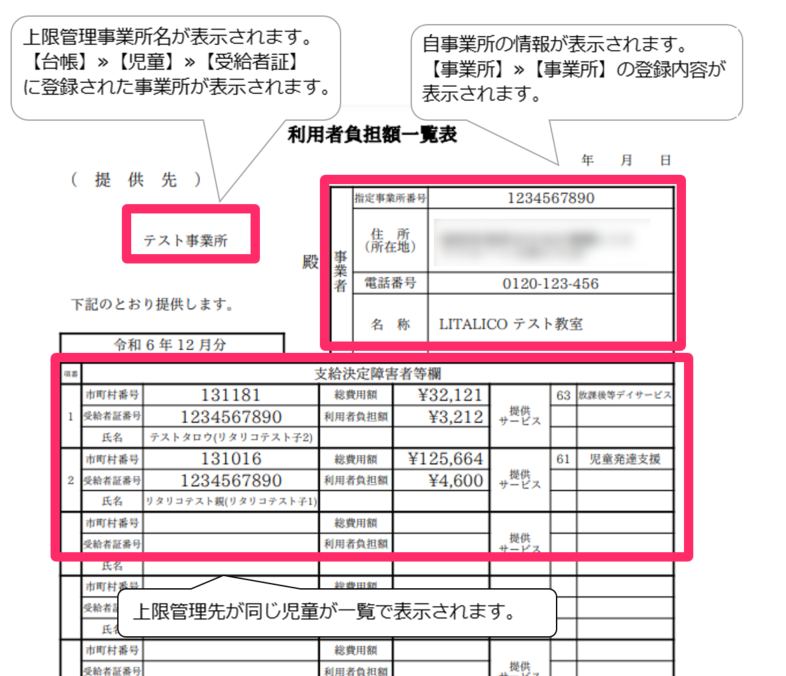 利用者負担額一覧表の出力方法の詳細はこちらの記事をご参照ください。