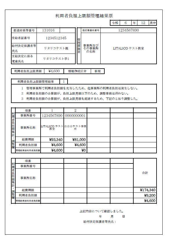 【上限額管理結果票】見本