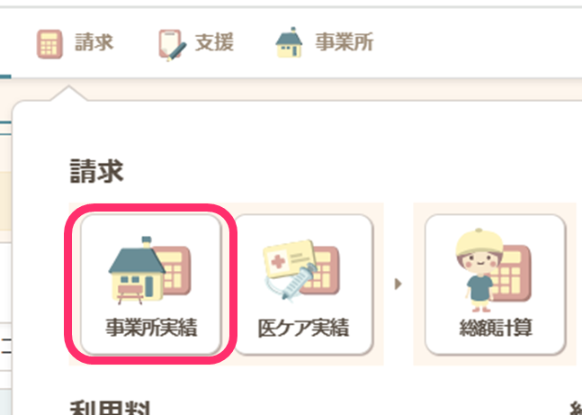 - 請求】>【事業所実績】の、該当提供月の画面を開きます。