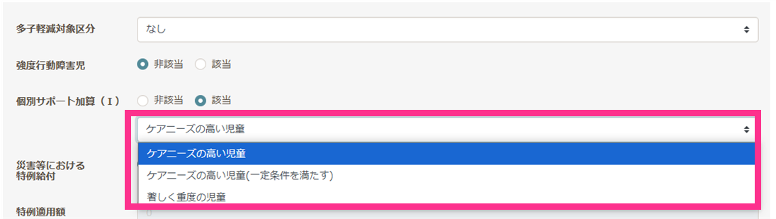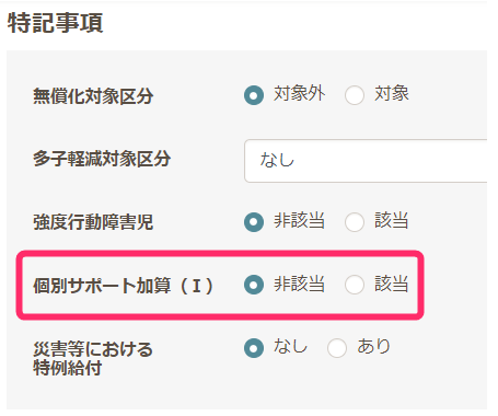 +をクリックし、個別サポート加算(Ⅰ)をクリックして正しい項目を選択してください。