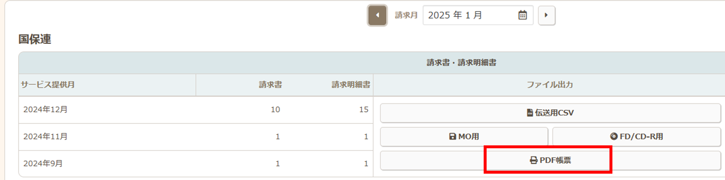 - 【請求】の【事業所実績】で対象提供月の【保存する】をクリックします。
