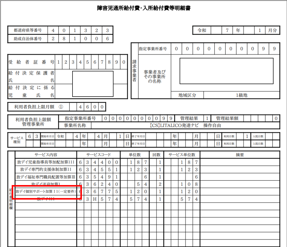 ※放デイの場合は個別サポート加算の有無とあわせ選択肢に誤りがないか確認します