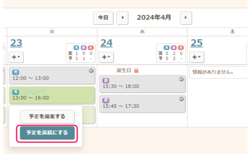 グローバルナビ【運営】から、【スケジューラ】をクリックし、該当児童をクリックして実績の編集画面を開きます。