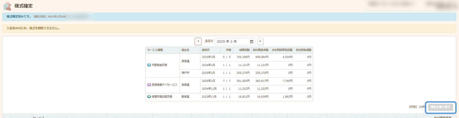 請求月が切り替わると、前請求月の様式確定は取り消しができなくなります。