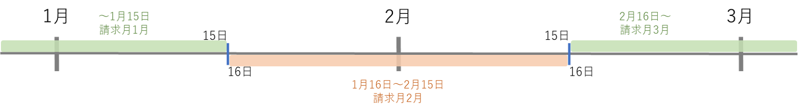例)1月16日~2月15日までは請求月2月、2月16日~3月15日までは請求月3月