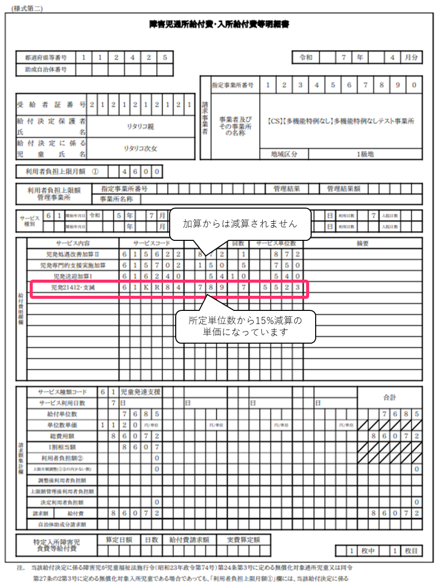 | 単位数 | 所定単位数の85%を算定(15%の減算) |