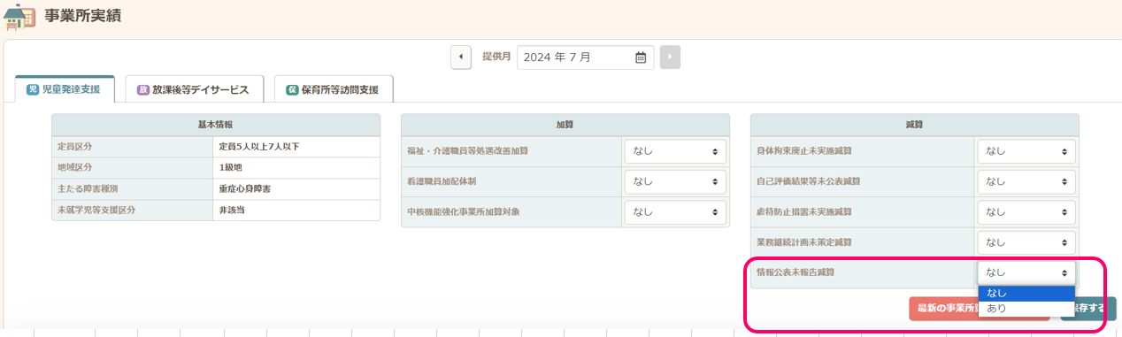 減算の枠の「情報公表未報告減算」を「あり」を選択します。