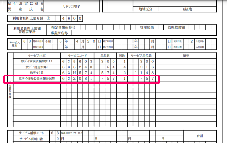 児童福祉法第33条の18の規定に基づく情報公表に係る報告がされていない場合、所定単位数を減算する。 |