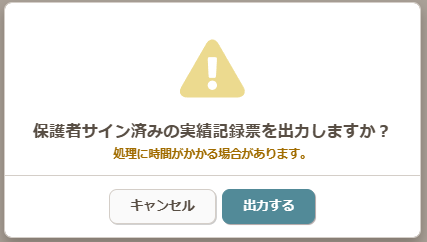 - ボタンが3つ表示されるので、【保護者サイン済み】を選択し、【出力する】をクリックします。