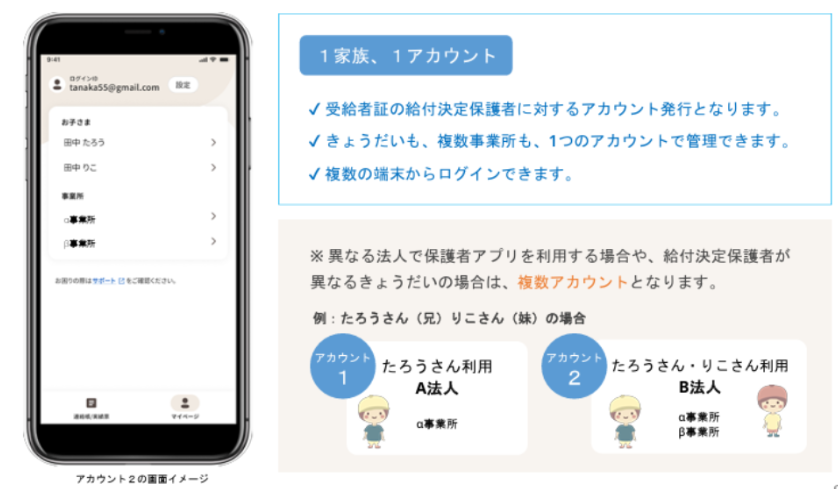 ・同一法人で複数事業所を運営している場合、共通のアプリ名が表示されます。そのため、アプリ名を変更された場合は、同一法人のすべての事業所において、保護者にアプリの削除と追加が必要です。