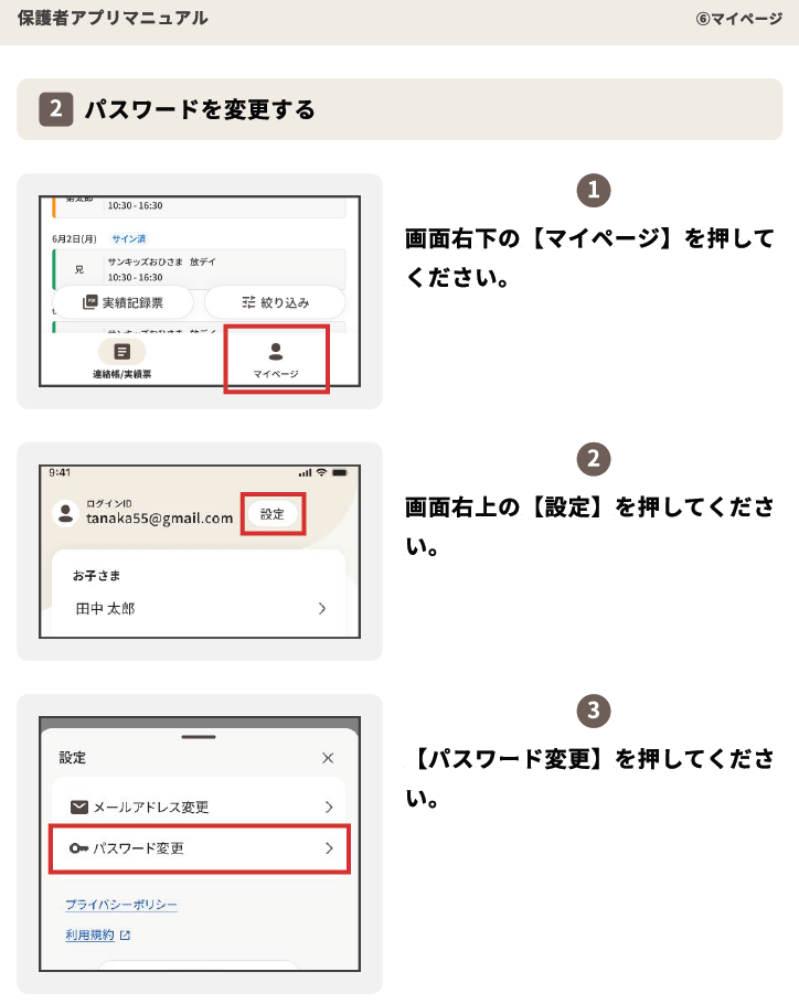 ◆解決方法:パスワード再設定の方法については保護者に下記の操作手順をお伝えください