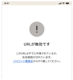 パスワード再設定等のURLの有効期限が切れている場合に表示されます。