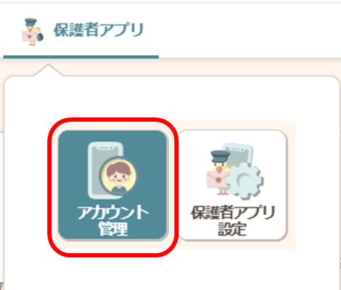 - グローバルナビの【保護者アプリ】から【アカウント管理】をクリックします。