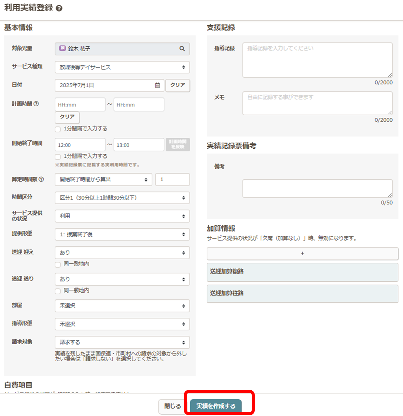 利用実績は、月の利用実績を確定していなくても、日々の実績を作成したら、その作成した内容がすべて反映されます。