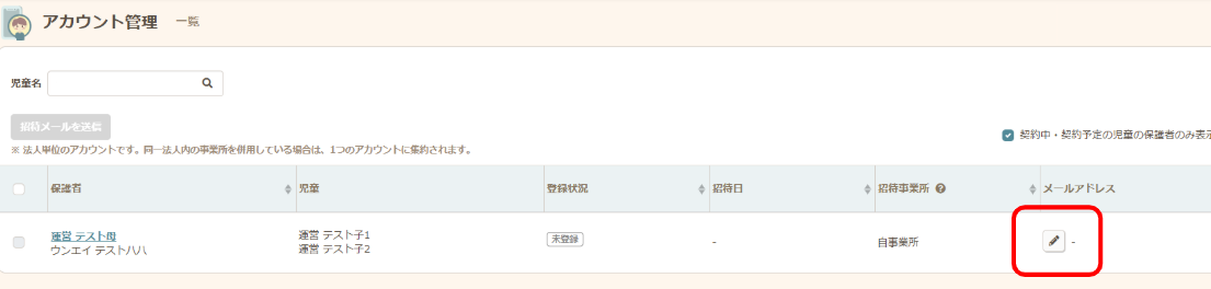 - アカウントを削除すると未登録の状態になるため、再度メールアドレスの登録を行い招待メールを送信します。