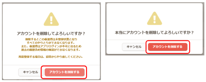 ※削除すると全てのやり取りができなくなります。また、保護者アプリでは過去の連絡帳や実績の情報が確認できなくなります。