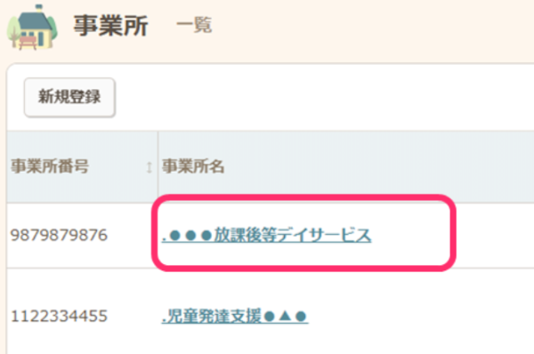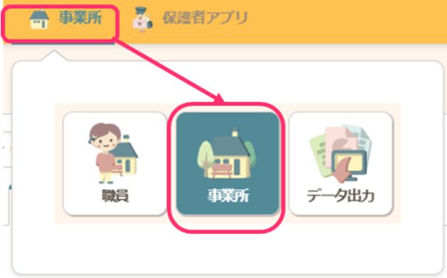 - グローバルナビ【事業所】から【事業所】のボタンをクリックします。