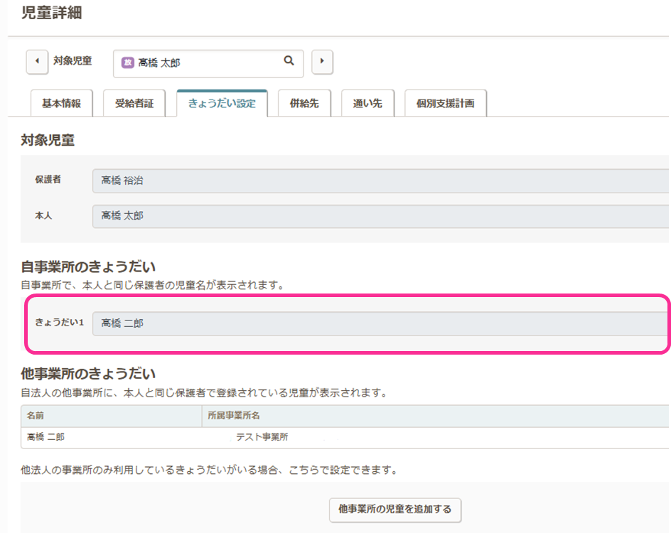 ※きょうだい児の場合は同一の保護者を設定する必要があります。