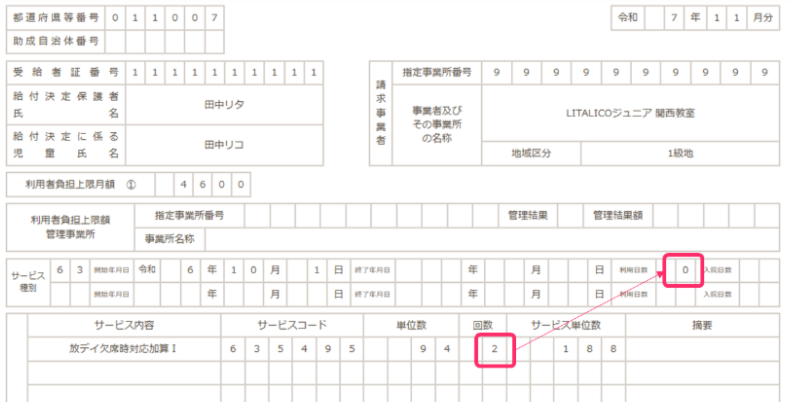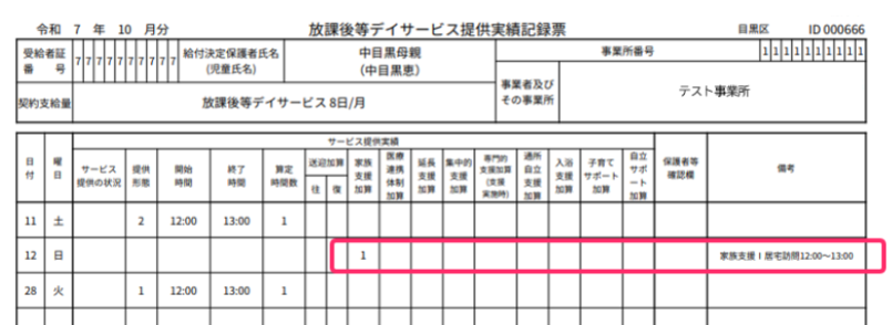 ※なお、④の加算は、通所利用が1回もない月に加算のみ算定すると、利用日数欄に「1」と表示されます。