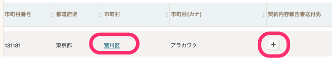 - 一覧で、市町村を選択します。 ※【+】から登録することもできます。