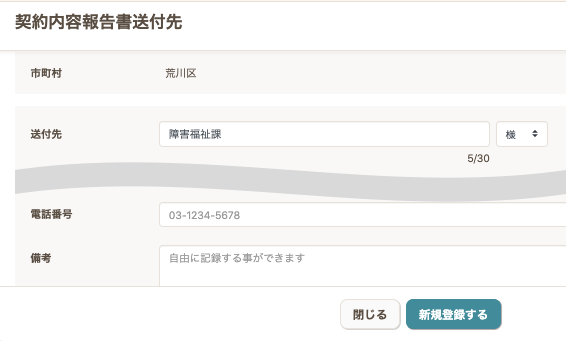 契約内容に変更があった場合に市町村に提出する契約内容報告書を作成します。