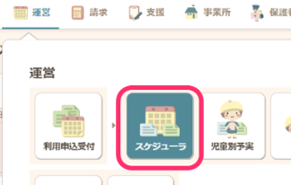 - グローバルナビの【運営】から【スケジューラ】をクリックします。