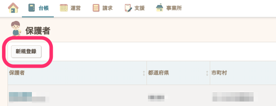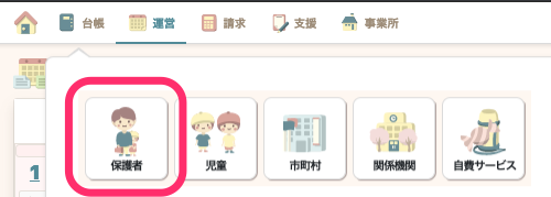 - グローバルナビの【台帳】から【保護者】をクリックします。