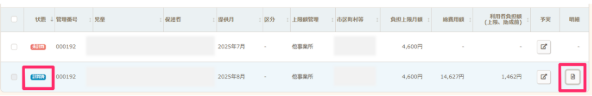 - 総額計算が完了すると状態が「計算済み」に変わります。また右の明細アイコンをクリックすると、総費用額や算定された基本報酬、加算等の情報が確認できます。