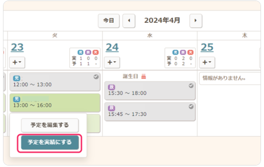 ※記録を残さない場合、記録欄は消さずにそのまま実績作成をしてください 。