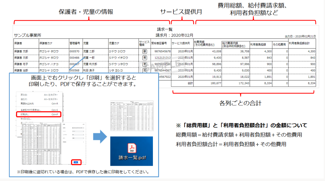 ・請求一覧は、請求月ごとに発生した請求金額や内訳が出力されます。