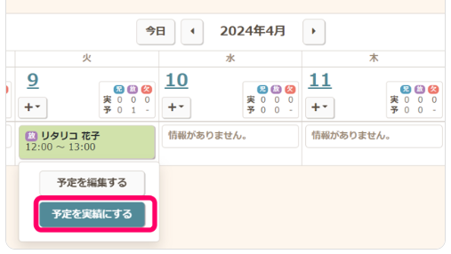 グローバルナビ【運営】から、【スケジューラ】をクリックし、該当児童をクリックして実績の編集画面を開きます。