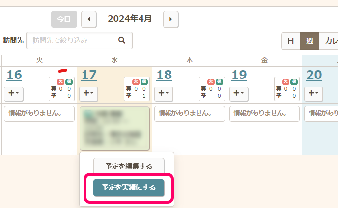 グローバルナビ【運営】から、【スケジューラ】をクリックし、該当児童の実績の編集画面を開きます。