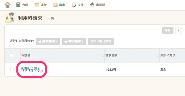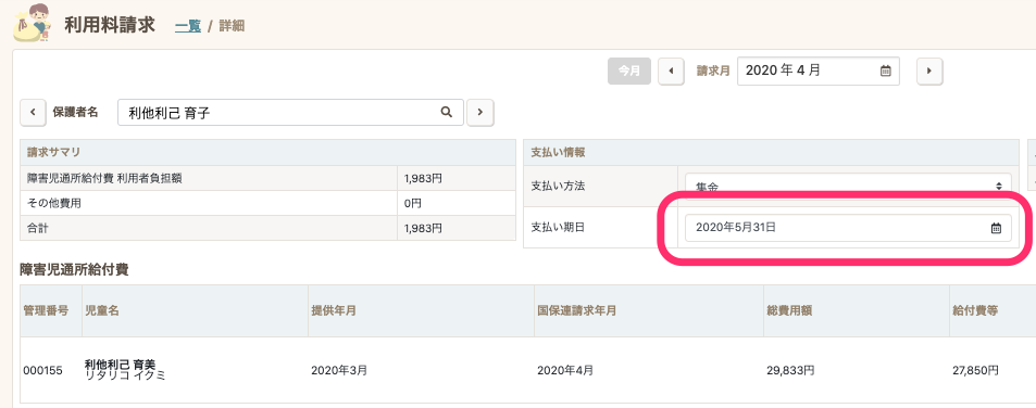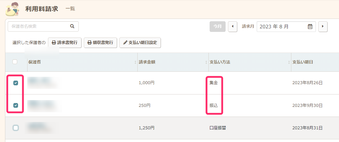 - 支払期日を変更したい保護者を選択します。
