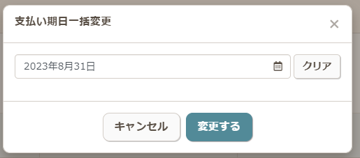 - 【支払い期日】を押し、カレンダーから変更したい日を設定します。