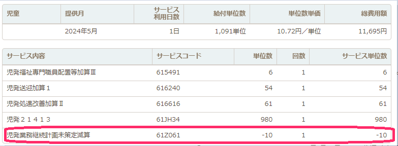 - 参考:総額計算画面では明細にて下記のように表示されます。(例:児童発達支援)