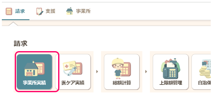 グローバルナビ【請求】から、【事業所実績】をクリックします