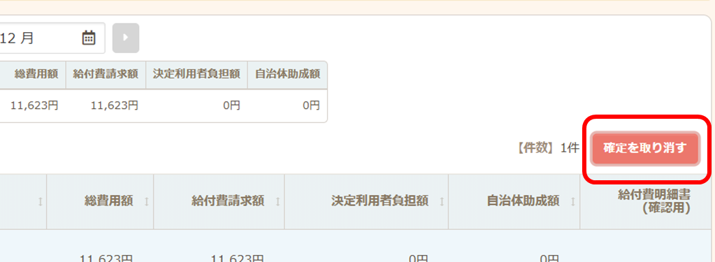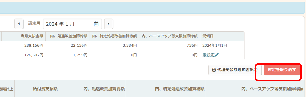 入金の確定を取り消すと、返戻設定をすることができます。 - 今月の請求が様式確定済みの場合